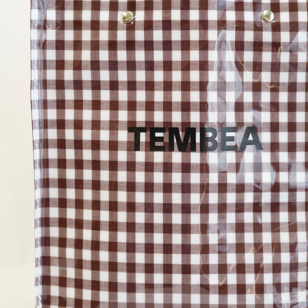 紙袋をイメージして作ったトートバッグ。チェックはシャツ生地にPVCコーティングを施し、防水性、耐久性を保たせています。 濡れても汚れてもサッと拭き取れるので、ちょっとした雨の日にも使えます。