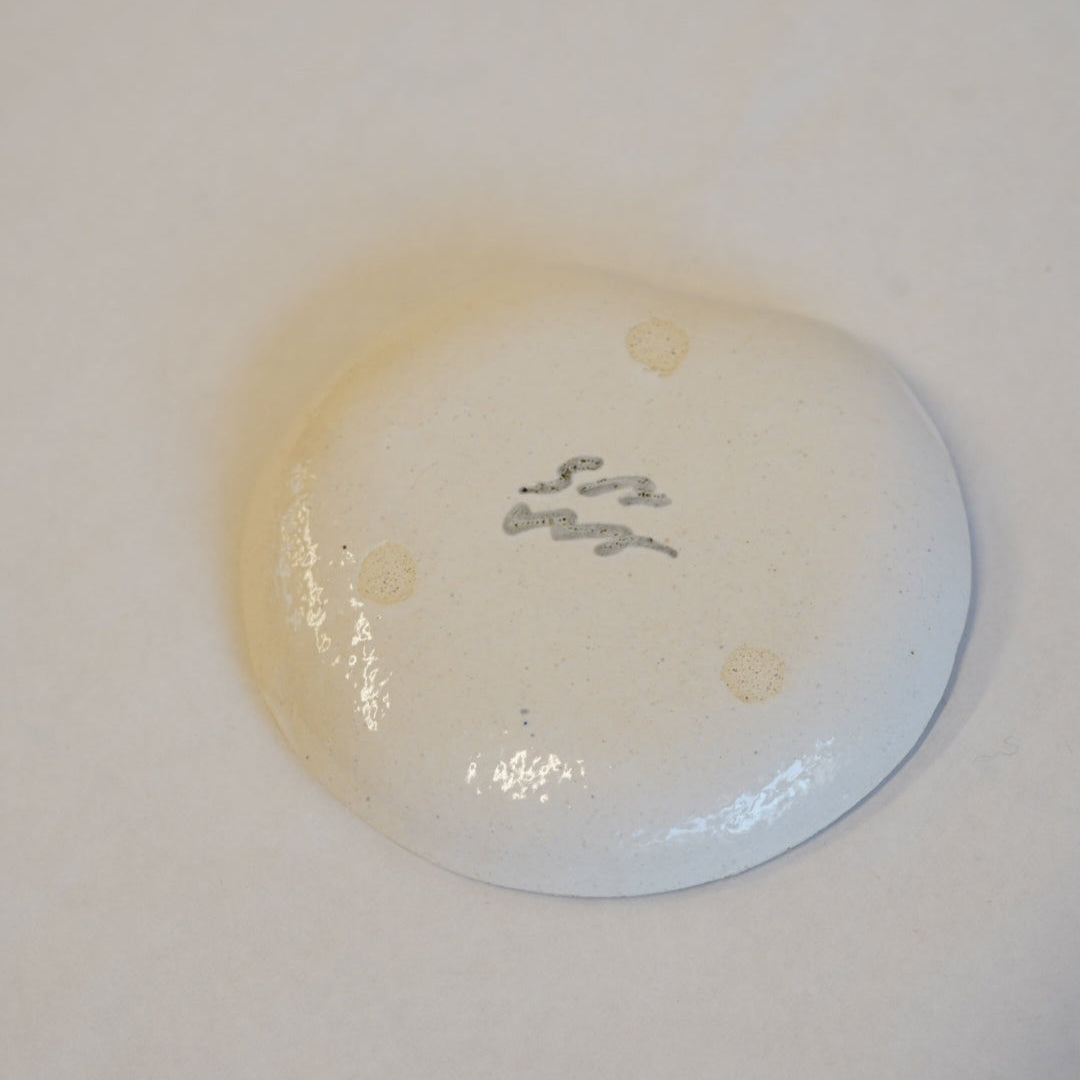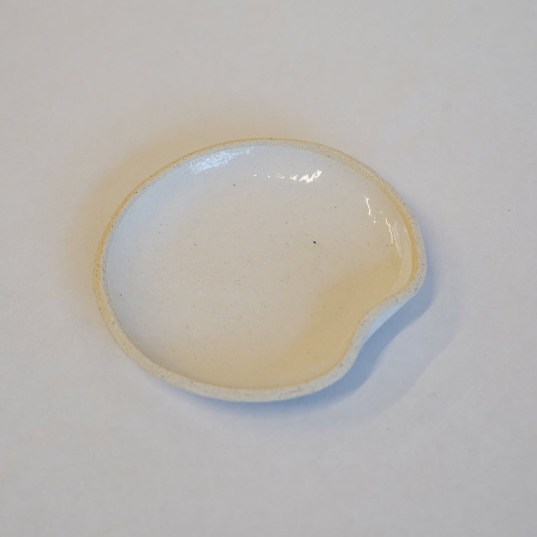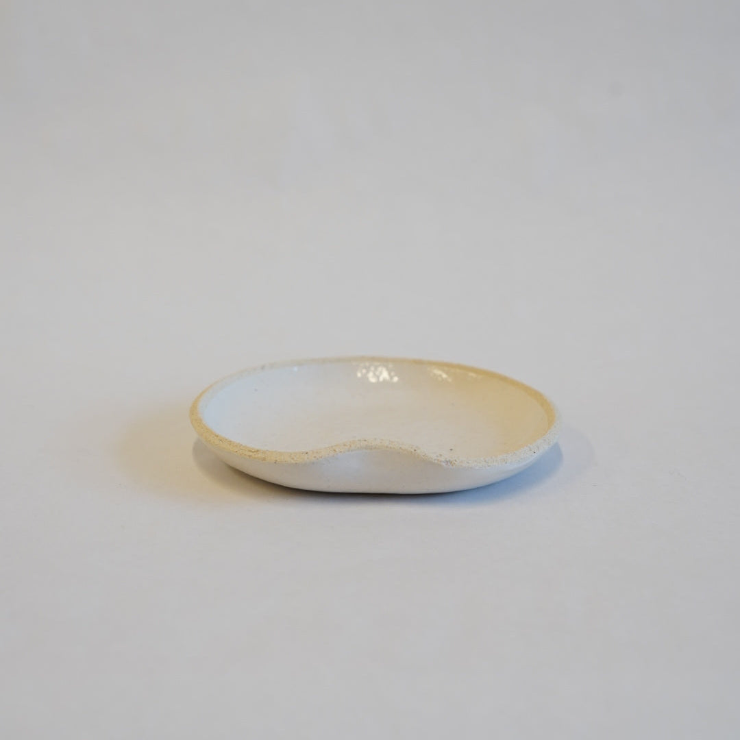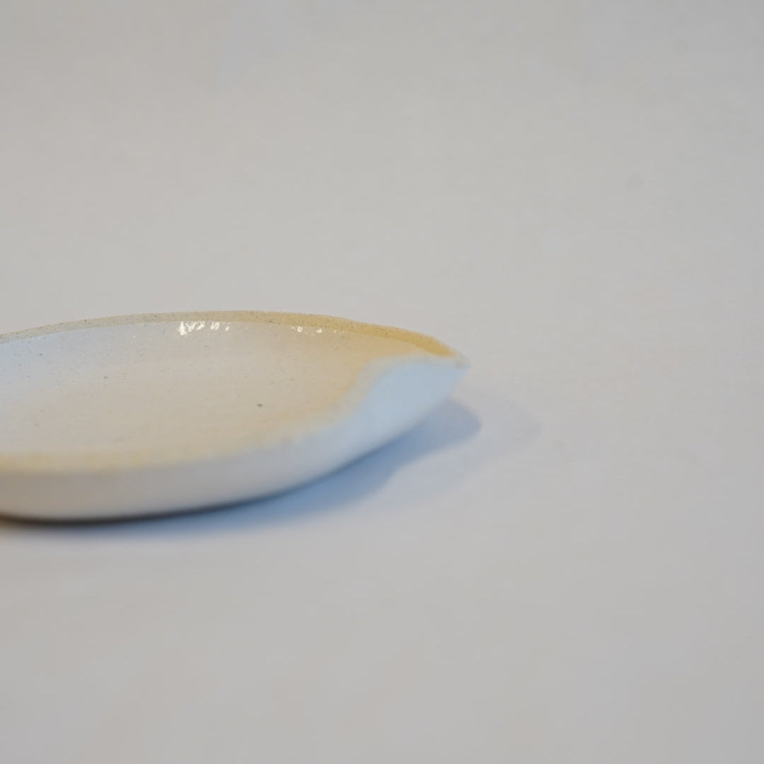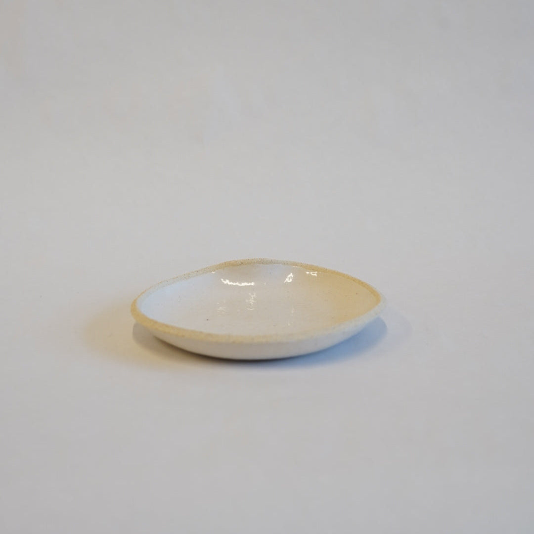 少し返りののある小さなお皿。縁が独特な形状をしていて、返り部分がとても持ちやすく実用的にもデザインも◎。
