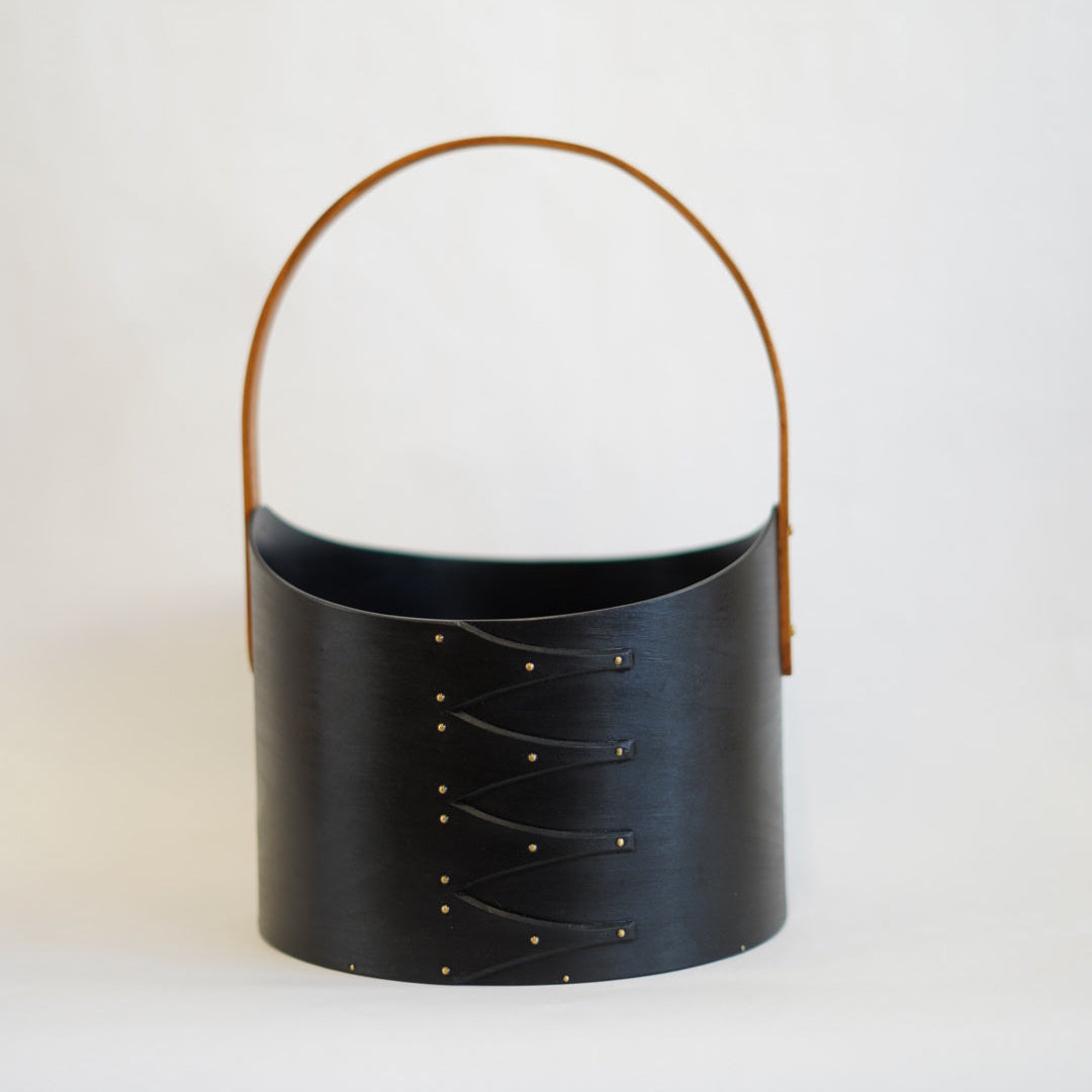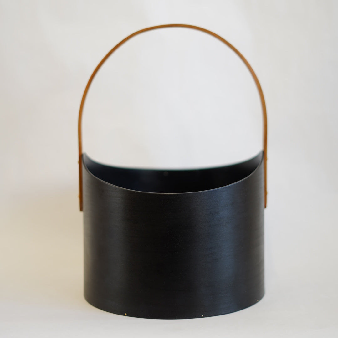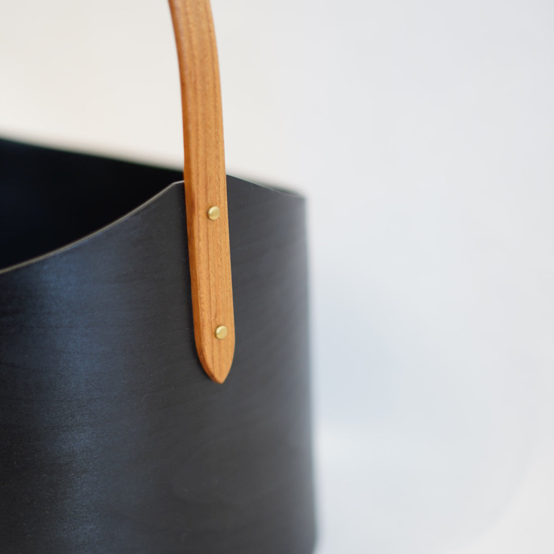 オーバルボックスの作り方を元に制作された取手付きのアイテム。長手方向に取り付けられた取手は、持ち手と本体の接合部分のカーブがきつい分、細やかな調整が必要になります。また、こちらの深型は他のアイテムと違う防水性の高いオイルを使って仕上げているためワインクーラーとしての用途で製作されています。もちろんそれ以外の収納ボックスとしての利用もオススメです。