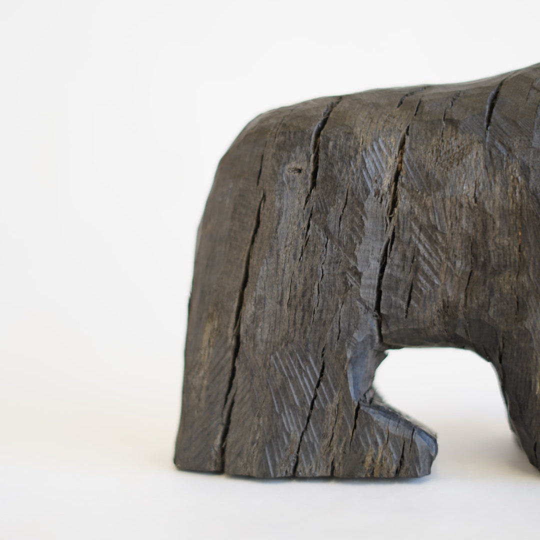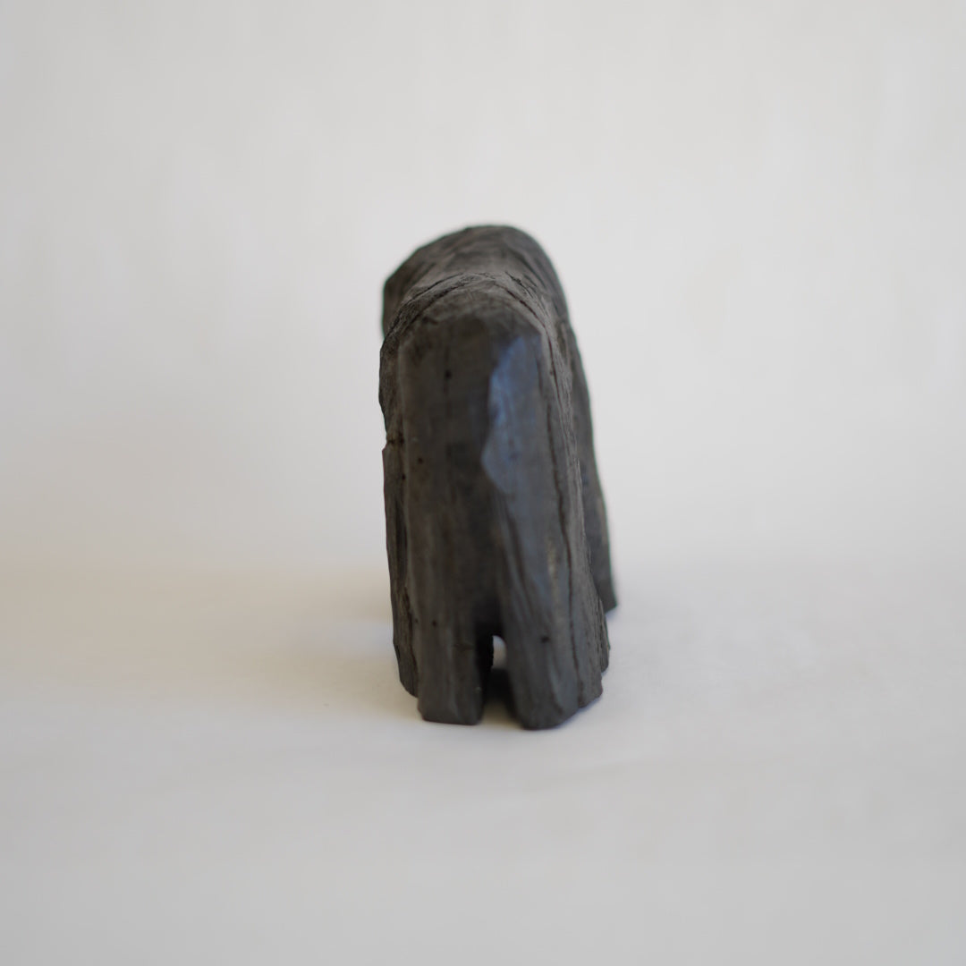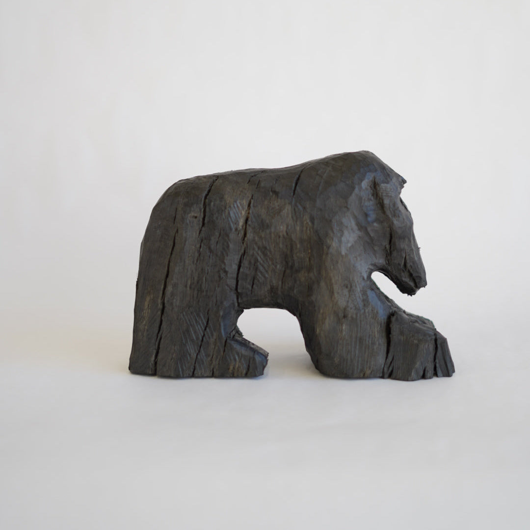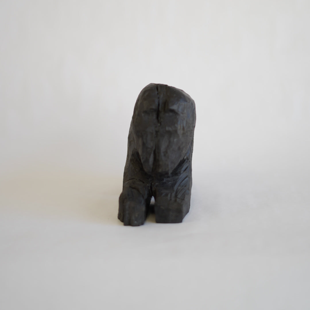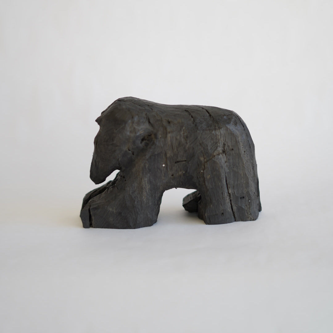 北海道の埋れ木を用いて製作している023(おじさん)の熊。埋れ木という半ば炭化し岩木と呼ばれるほど、とても硬く掘るのが困難窓材をを023は電動工具などを駆使しながら掘っています。プリミティブで抽象的でありながら、どこか可愛らしい熊。それにしても細くない?いや細いよね、キミ。あなたの手元に。