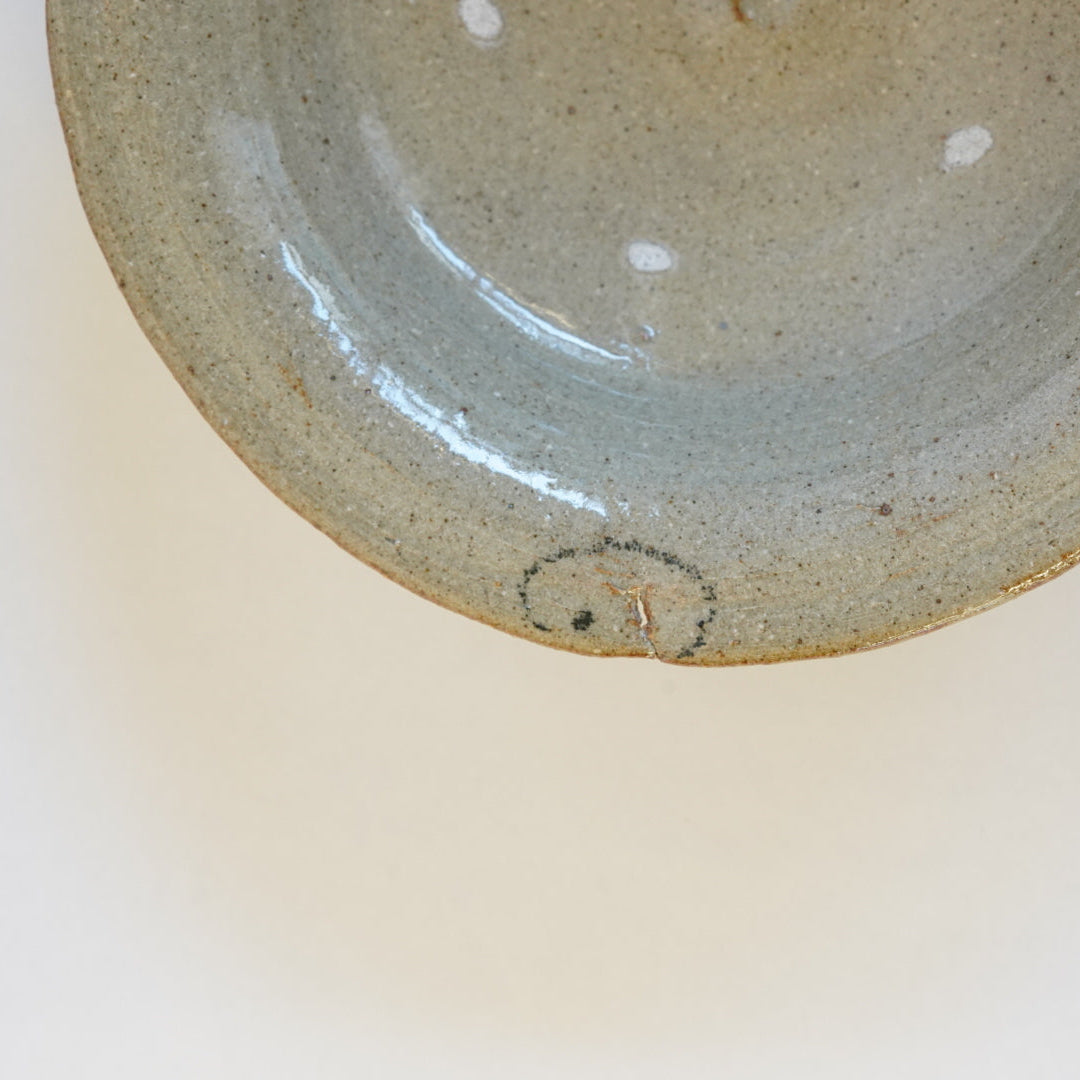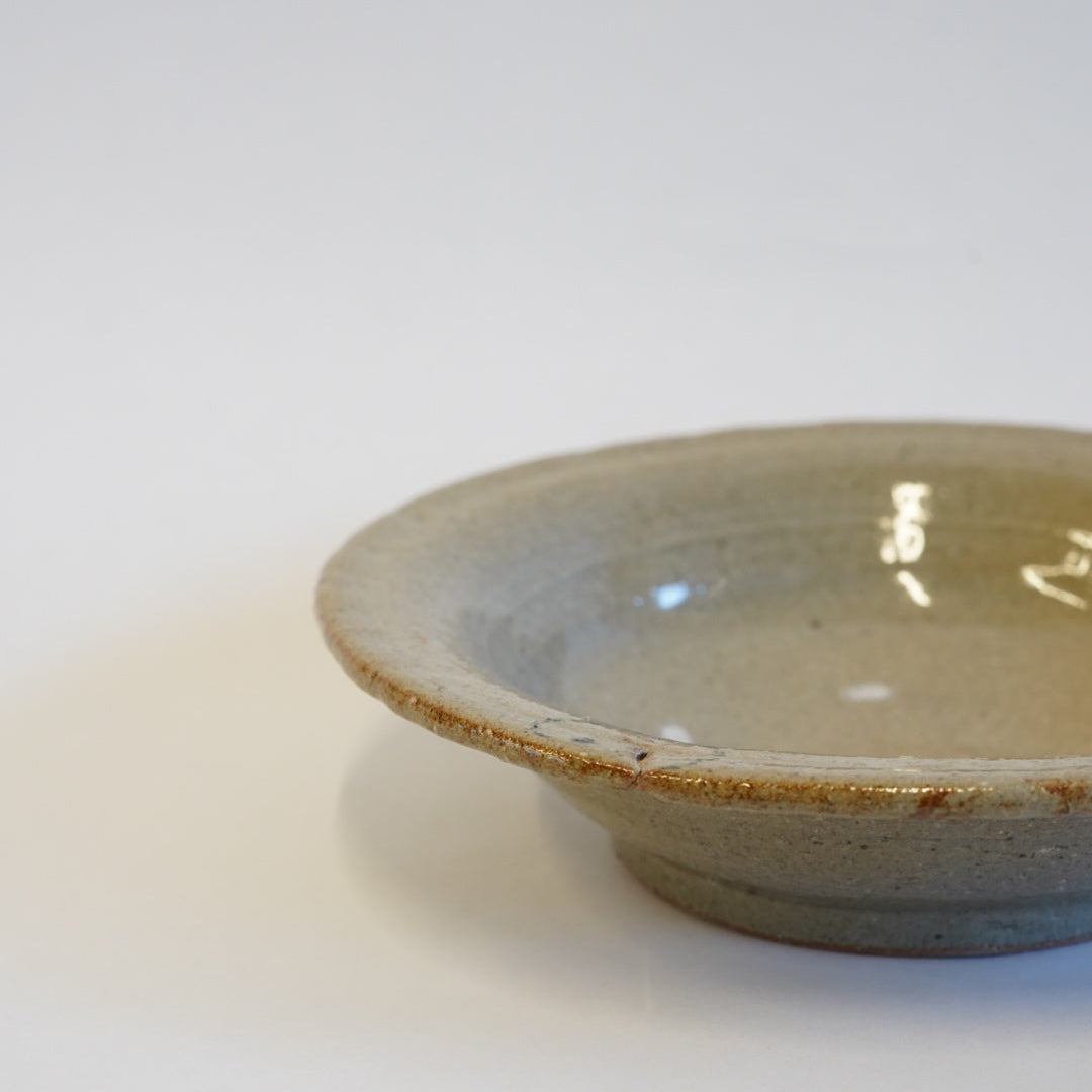 少し深めのお皿です。スープなどの汁物もなんでも受け止めてくれるでしょう。7寸サイズは食器として一番使えるサイズかと思います。リム部分の繋ぎ目に何やら横顔が。こういうお茶目なところも平田さんの面白さです。