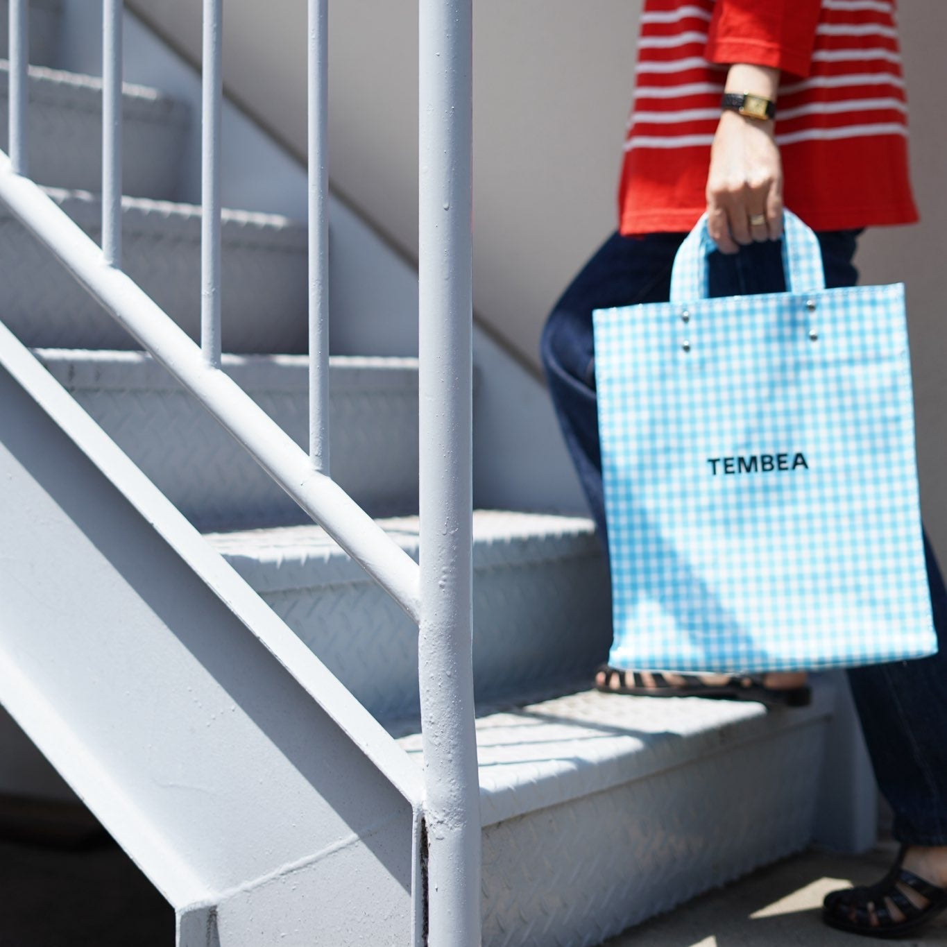 紙袋をイメージして作ったトートバッグ。チェックはシャツ生地にPVCコーティングを施し、防水性、耐久性を保たせています。 濡れても汚れてもサッと拭き取れるので、ちょっとした雨の日にも使えます。