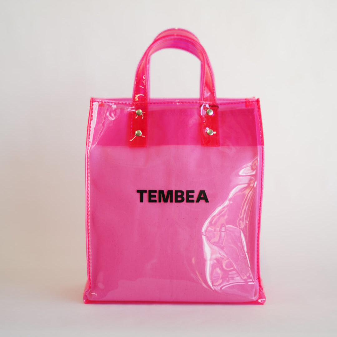 透明のPVC素材を使用し紙袋をイメージして作ったトートバッグ。 内側のキャンバスの袋は、取り外して使うこともできます。 濡れても汚れてもサッと拭き取れるので、安心です。